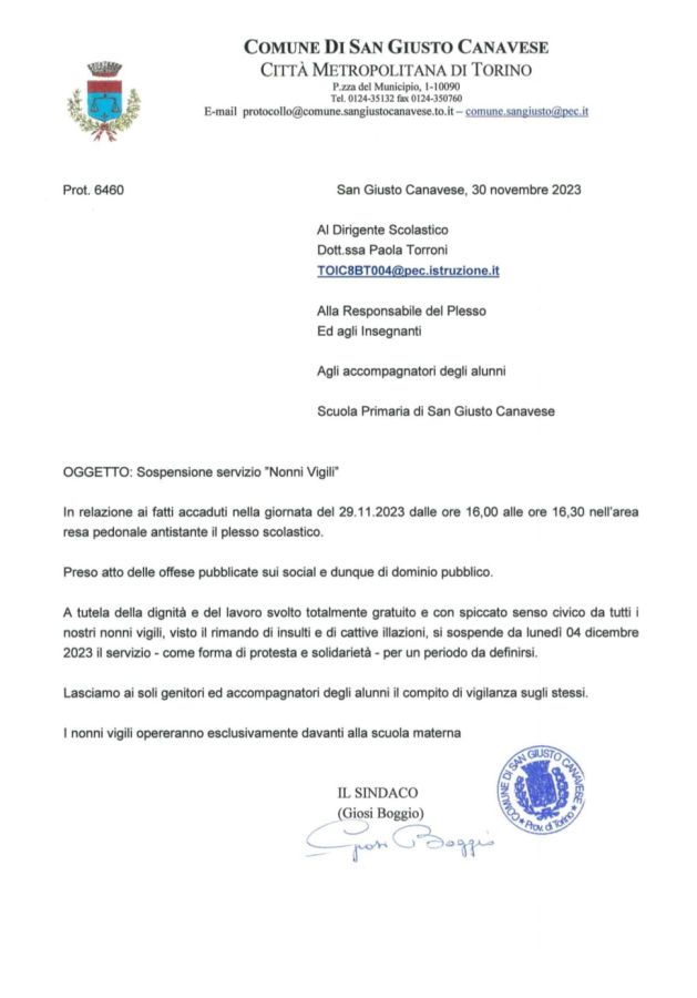 SOSPENSIONE SERVIZIO NONNI VIGILI